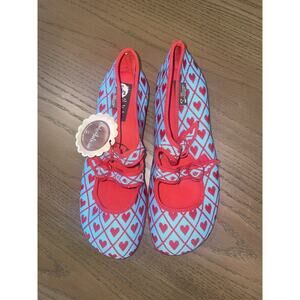 NWT Hot Chocolate Design Chocolaticas Funky Canvas Heart Mary Jane Flat Shoes