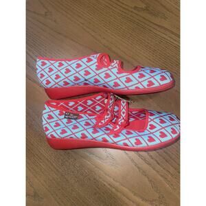Elevate your shoe game with these NWT Hot Chocolate Design Chocolaticas. These funky canvas shoes feature a heart design and are perfect for any woman who loves to make a statement. The red color and synthetic upper material add a pop of color to any outfit.