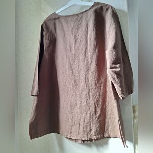 NWT Hot Cotton 1X Brown linen blend blouse top, tunic