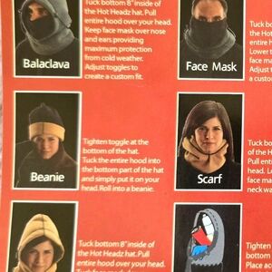 NWT! Hot Headz Camouflage and Black Fleece 6 ways to wear hood!! See example pic
