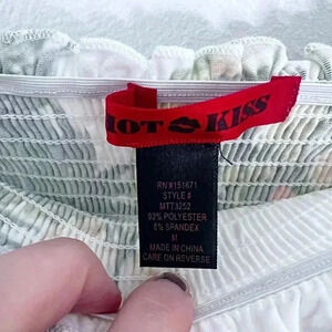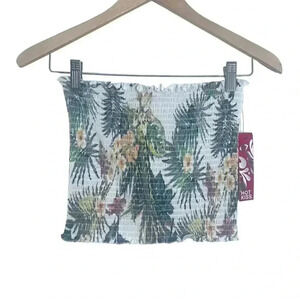 NWT Hot Kiss Green White Tropical Smocked Tube Top Summer Beach Vacation Size M
