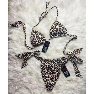 Brand new with tags Hot Miami Styles leopard padded halter tie up bikini. Top is a size small, bottom is a medium.