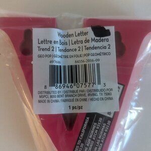 Vivid pink lowercase letter 'v' small wood sign, Michael's Trend 2 'Geo Pop' collection. This bright, typewriter font letter sign features openings for hanging on the reverse, measures approx 4" tall x 4" wide, and is new in packaging. A colorful birthday gift for Victor, Valerie or Vanessa, or makes a great addition to your Summer home decor :)