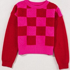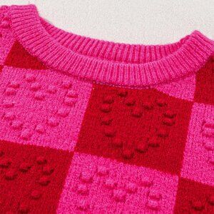 NWT Hot Pink & Red Plaid Heart Round Neck Valentine's Sweater