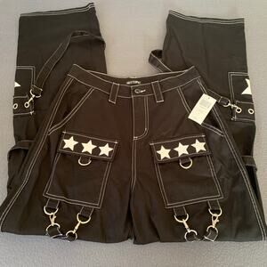 NWT Hot Topic Black Stars Strappy Skate Pants Girl's Sz 5 Skater Punk Rave Y2K