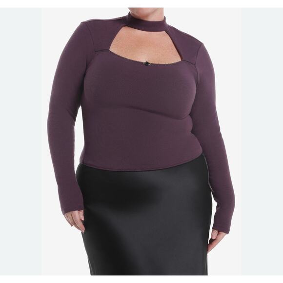 Hot Topic Cosmic Aura Purple Long Sleeve Mock Neck Cutout Top, Plus Size 5X.