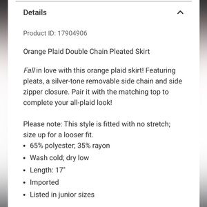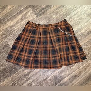 NWT Hot Topic Orange Plaid Double Chain Pleated Skirt XL