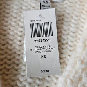 This is an adorable sweater for Spring/cool Summer nights and now. Cream, button down, with red bows. Comes to the waist, has original tags. In perfect condition. Please review all images carefully prior to purchase, all sales are final