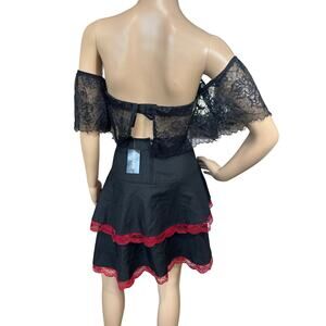 NWT Hot Topic Tiered Lace Chains Mini Skirt Black Red Satin Corset Lace Bows SZ Large Steampunk Gothic Whimsigoth Glam Goth Punk Rockability