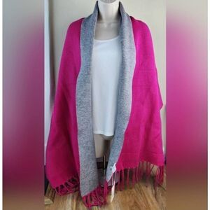 🔸️NWT Hot Pink & Gray Fringe Lined Sweater Shawl Scarf One Size