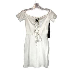 NWT H:ours x Revolve Dorian WHITE Lace Up Mini Dress Size XS