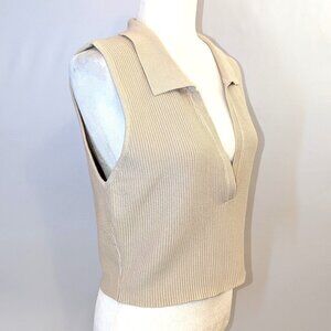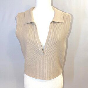NWT House Of Harlow 1960 | Sleeveless Collar Sweater Ribbed Knit Tank Top in Tan