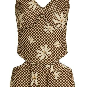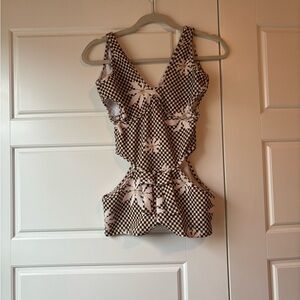 NWT House of AAMA Brown and White Retro One Piece Swimsuit