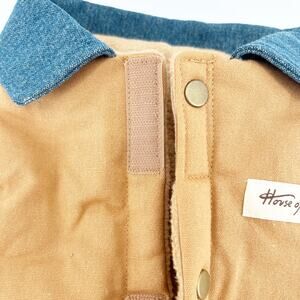 House of Barker Pet Puppy Dog Winter Canvas Fleece Lined Vest Coat Jacket in Tan and Blue. Size Medium.