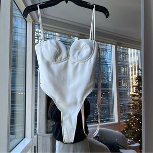 NWT House of CB Avery Bodysuit in Ivory Deep V Neck Boning Tank Top Corset