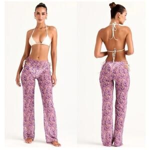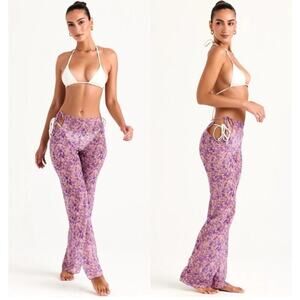 NWT House of CB Keala Cutout Sheer Coverup Pants Violet Floral, M