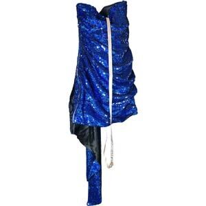 NWT House of CB London Gisele Blue Sequin Draped Strapless Mini Dress XS