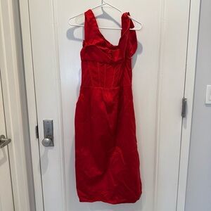 NWT House of CB Lulu Corset One-Shoulder Satin Midi Dress Red Size Large Plus