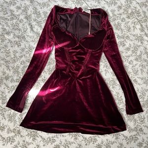 'Veronica' is so luxurious and perfect for those special date nights. Cut from plush stretch velvet in a gorgeous black cherry, 'Veronica' has a pintucked bodice and cups for the prettiest in feminine details and the long sleeves balance the flirty hemline beautifully. The soft satin lining creates a smooth finish and it zips up the back for easy on. No bra required as it's cupped and lined. Made from stretch velvet. Fully lined.
