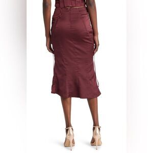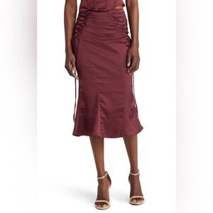 NWT House of Cb Sidonie Satin Midi Wine Red Skirt Lace Size M