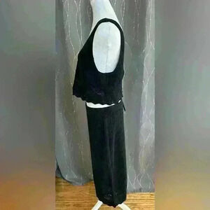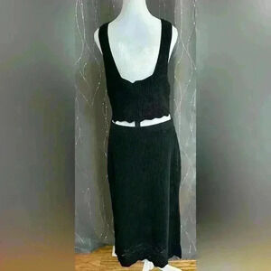 NWT House of Harlow 1960 Black 2 Piece Crochet Cropped Tank and Midi Skirt Sz L