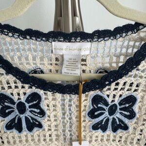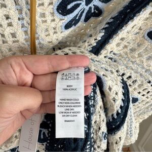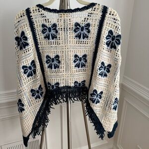 NWT House of Harlow 1960 Bow Navy and Cream Crochet Boho Poncho Coverup