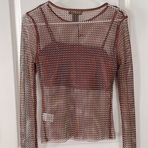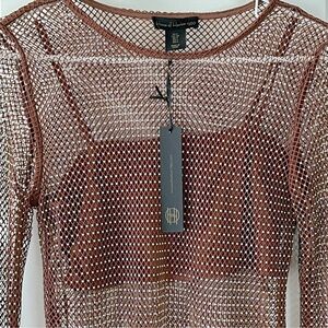 New with tag House of Harlow 1960 Brown Open Stitch Top size XS fish net see through top