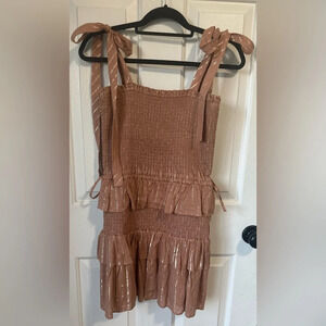 NWT House of Harlow 1960 Corinne Shirred Ruffled mini dress in “Desert Rose”. Size Medium.