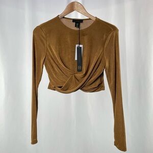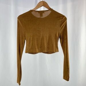 NWT House of Harlow 1960 Long Sleeve Cropped Shimmer Top in Bronze Size Medium
