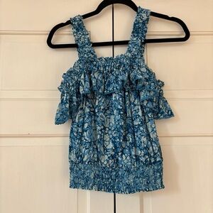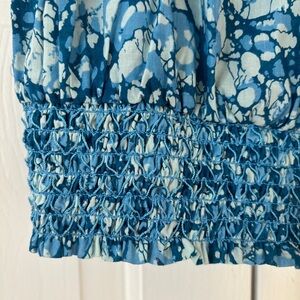 NWT House of Harlow 1960 Martine Blue Print Smocked Shirt Top Blouse Size Small