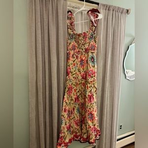 NWT House of Harlow 1960 Maxi Dress. Zoey khaki floral print dress smocked top with ruffle detailing. Open to reasonable offers.