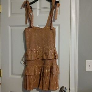 New with tags Ruffle House of Harlow 1960 brown shimmer dress with ties on shoulders. perfect for spring and summer! size medium in womens. open to offers.