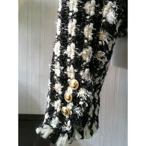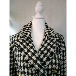 NWT House of Harlow 1960 Black & White Plaid Tweed Fringe Women’s-Large