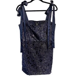 NWT- House of Harlow 1960- Revolve- Navy Velvet Mini Dress Ribbon Straps Large
