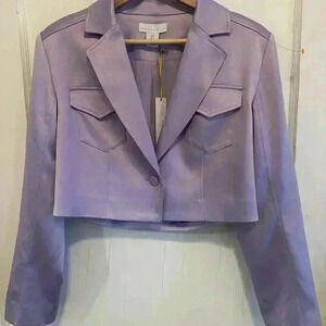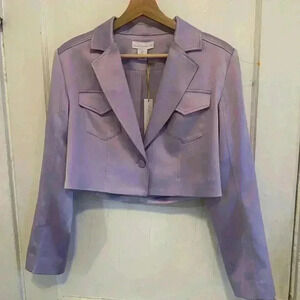 NWT House of Harlow 1960 Satin Lilac Cropped Blazer