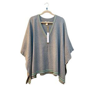 House of Harlow 1960 women's varsity sweater poncho dress in heathered gray is a one size fits most garment. Designed by the company to wear as a mini dress, this is perfect to wear as a poncho over lots of outfits from day wear to night. Cute banded V neckline in green.
