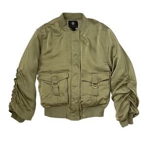 NWT House of Harlow 1960 Women's Bomber Jacket - Green Satin - Quilted - Size S
