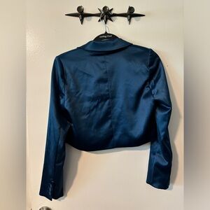 NWT House of Harlow 1960 blue satin cropped blazer