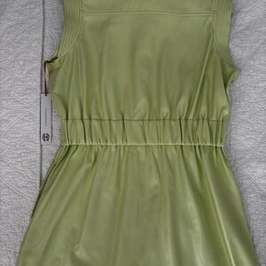 NWT House of Harlow 1960 sleeveless, button down, collared dress. Vegan leather material. Built in shoulder pads. Elastic waist. Has pockets.