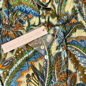NWT! House of Harlow Boho Floral Ivory/Blue Open Tie Cami Back Maxi Dres…