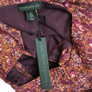 NWT House of Harlow Boho Ruffled Floral Metallic Dress Size 8