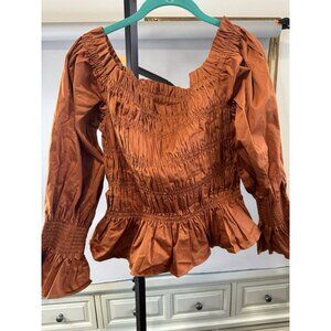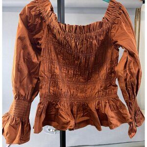 NWT House of Harlow Puff Sleeves Top Sz XL Stretch Off Shoulder Smocked Blouse