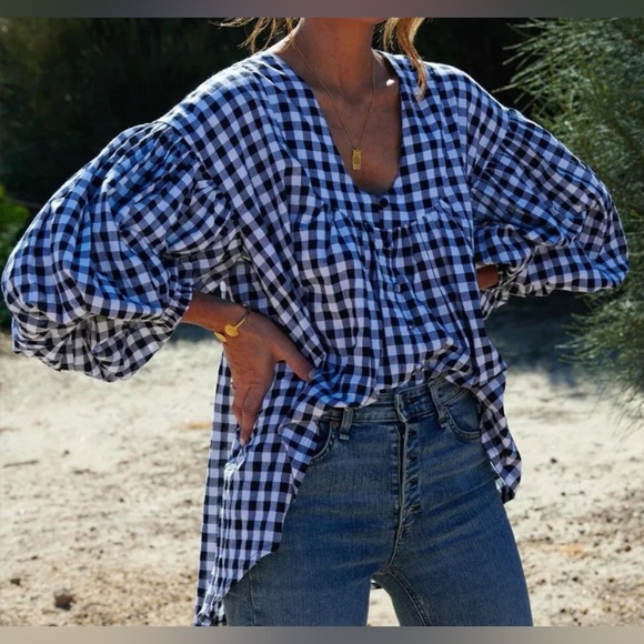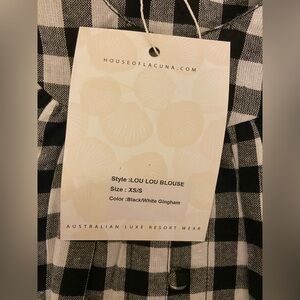 NWT House of Lacuna Lou Lou Blouse Black & White Gingham Size XS/S