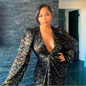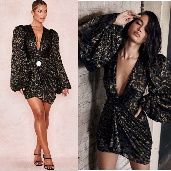 NWT House of CB Lotus Mini Black Gold Dress Lace Size S