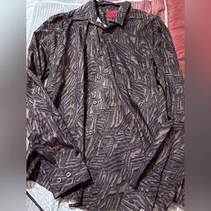 Elegant dark shirt with abstract pattern. Ideal for casual outings. Button-down style. Size Large. New with tags.
