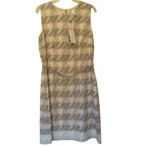 NWT Hugo Boss Diemoni gray/pink belted houndstooth tweed knee-length dress sz 10