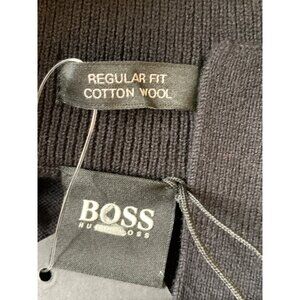 This Hugo Boss pullover sweater offers a regular fit, crafted from a cotton and wool blend for comfort and warmth. The 1/4 zip design adds a touch of sophistication, making it suitable for various professional settings. Its black color provides versatility, allowing it to pair effortlessly with different outfits.