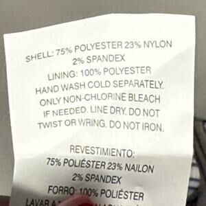 Shell: 83% Polyester, 17% Spandex