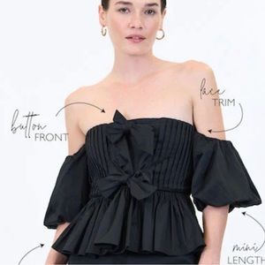NWT Hunter Bell Anthropologie Rhea Top Off Shoulder Ribbon Pleated Black Size 6