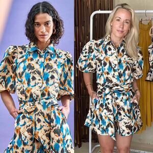 NWT Hunter Bell Ashton Short Tie Waist Blue & Tan Tie Dye High Waist Size: 0